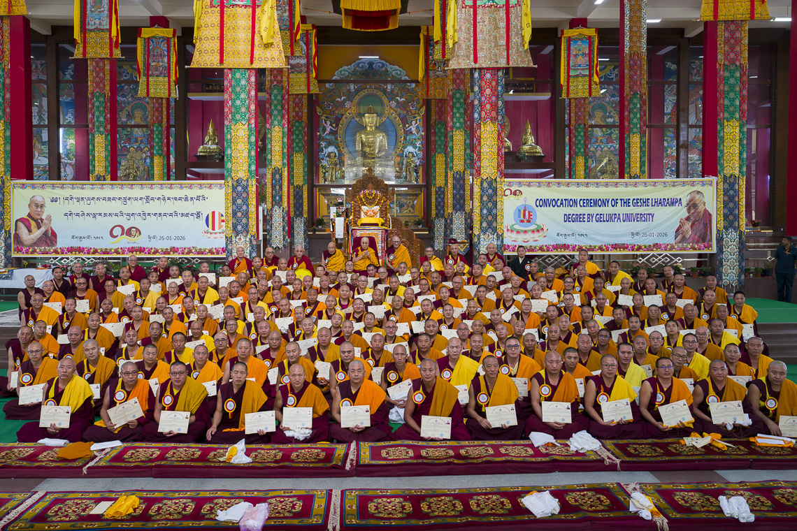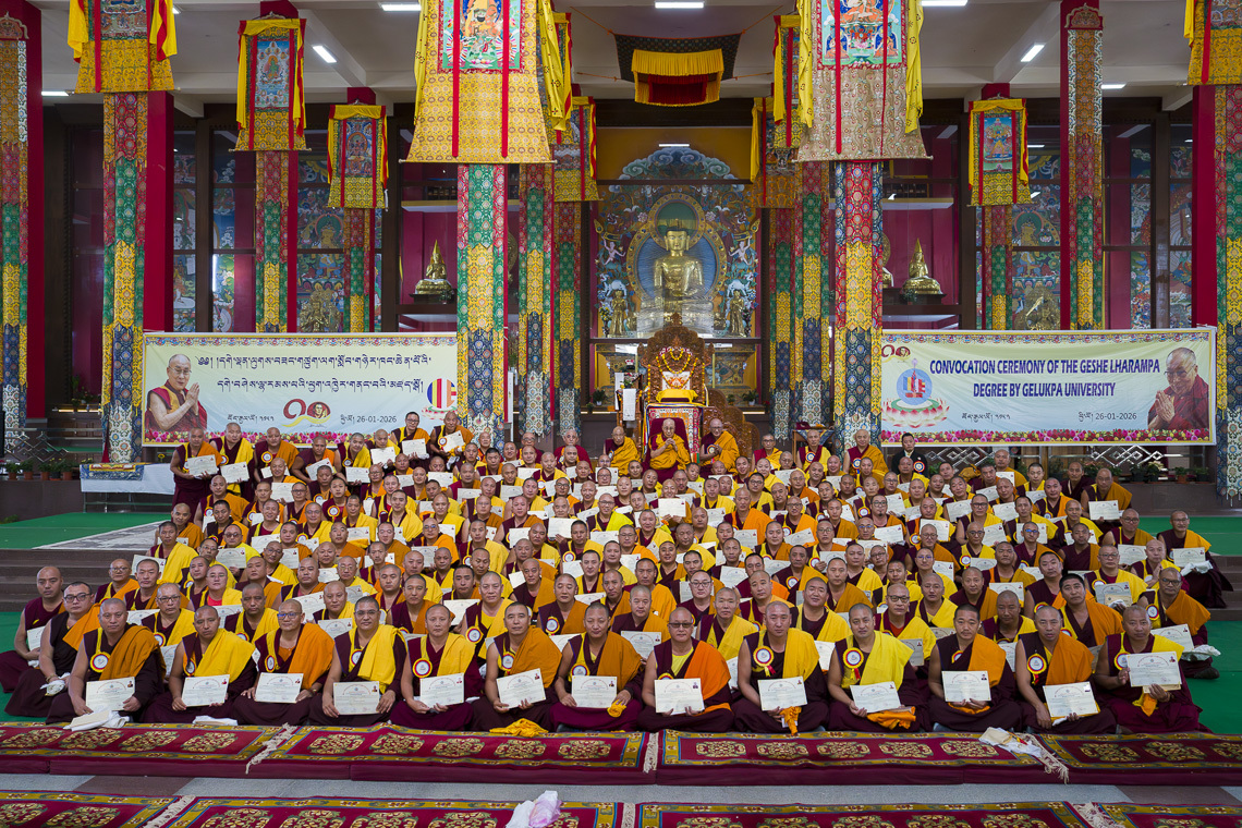 ༄༅། །ཕྱི་ལོ་ ༢༠༢༦ ཟླ་ ༡ ཚེས་ ༢༦ ཉིན་གྱི་སྔ་དྲོ་སྤྱི་ནོར་༸གོང་ས་༸སྐྱབས་མགོན་ཆེན་པོ་མཆོག་གིས་རྒྱ་གར་ལྷོ་ཕྱོགས་ཀར་ན་ཊ་ཀ་མངའ་སྡེའི་མོན་གྷོ་ཌི་རུ་རྟེན་གཞི་བྱས་པའི་བྱེས་ཀྱི་ཆོས་སྡེ་ཆེན་པོ་དཔལ་ལྡན་འབྲས་སྤུངས་སྒོ་མང་གྲྭ་ཚང་གི་ཆོས་གྲྭའི་ནང་དུ་དགེ་ལྡན་ལུགས་བཟང་གཙུག་ལག་སློབ་གཉེར་ཁང་གི་སྐབས་བཅུ་དྲུག་པའི་དགེ་བཤེས་ལྷ་རམས་པའི་ཕྱག་འཁྱེར་བཞེས་མཁན་དགེ་འདུན་པ་ ༣༥༤ ལ་མཇལ་ཁ་བཀའ་དྲིན་སྩལ་ཡོད་པ་རེད།