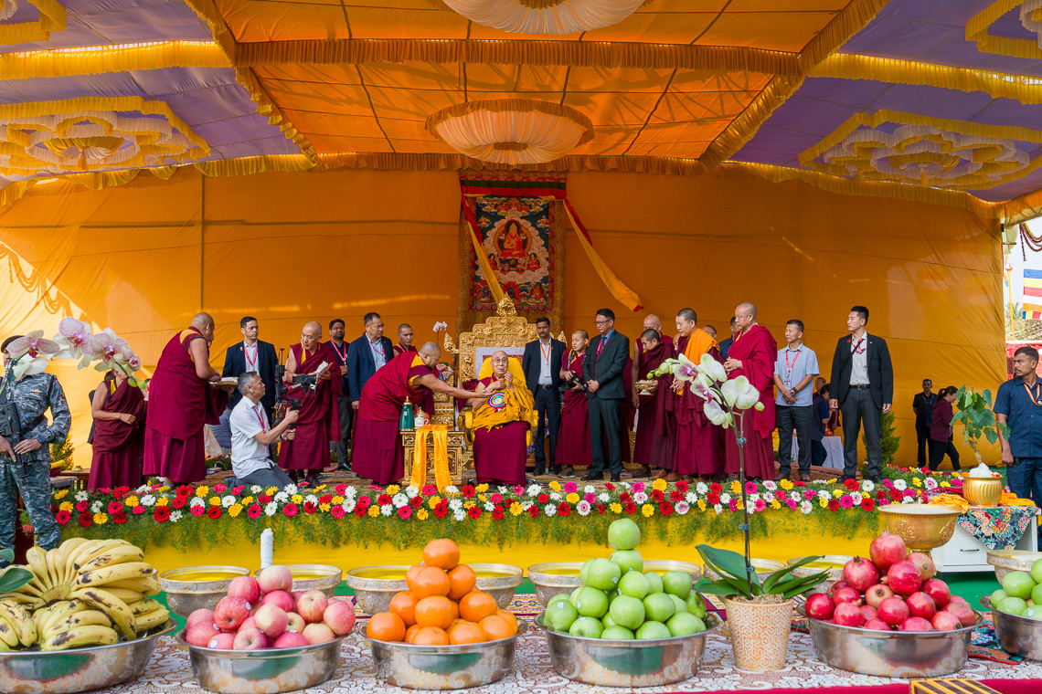 སྤྱི་ནོར་༸གོང་ས་༸སྐྱབས་མགོན་ཆེན་པོ་མཆོག་ལ་བཞུགས་ཁྲིར་༸ཞབས་སོར་འཁོད་མཚམས། དགའ་བྱང་ཀླུ་འབུམ་མཚན་སྒྲོགས་རིན་པོ་ཆེས་སློབ་གཉེར་ཁང་གསར་བཞེངས་ཀྱི་དབུ་འབྱེད་མཛད་བྱང་གཟིགས་འབུལ་དང་། མཎྜལ་འདེགས་འབུལ་ཞུས། དེ་རྗེས་ཤྲཱི་ལིང་ཀའི་རྒྱལ་ཁབ་ཀྱི་བླ་ཆེན་(The Chief Monk from Sri Lanka,)དང་། བྱང་ཆུབ་ལྗོན་ཤིང་གི་དགོན་པའི་དབུ་འཛིན་ནས་བྱང་ཆུབ་ལྗོན་ཤིང་གི་ཆ་ཤས་ཕུལ་ཏེ་བྱིན་རླབས་ཞུས་རྗེས། སྤྱི་ནོར་༸གོང་ས་༸སྐྱབས་མགོན་ཆེན་པོ་མཆོག་གིས་སློབ་གཉེར་ཁང་ལ་རབ་གནས་བྱིན་འབེབས་ཀྱིས་དབུ་འབྱེད་རབ་གནས་ཀྱི་མཛད་སྒོ་ལེགས་པར་གྲུབ་སྟེ་དགའ་ལྡན་གསེར་གདུང་ཁང་ལ་རབ་གནས་བྱིན་འབེབས་མཛད་ཡོད།