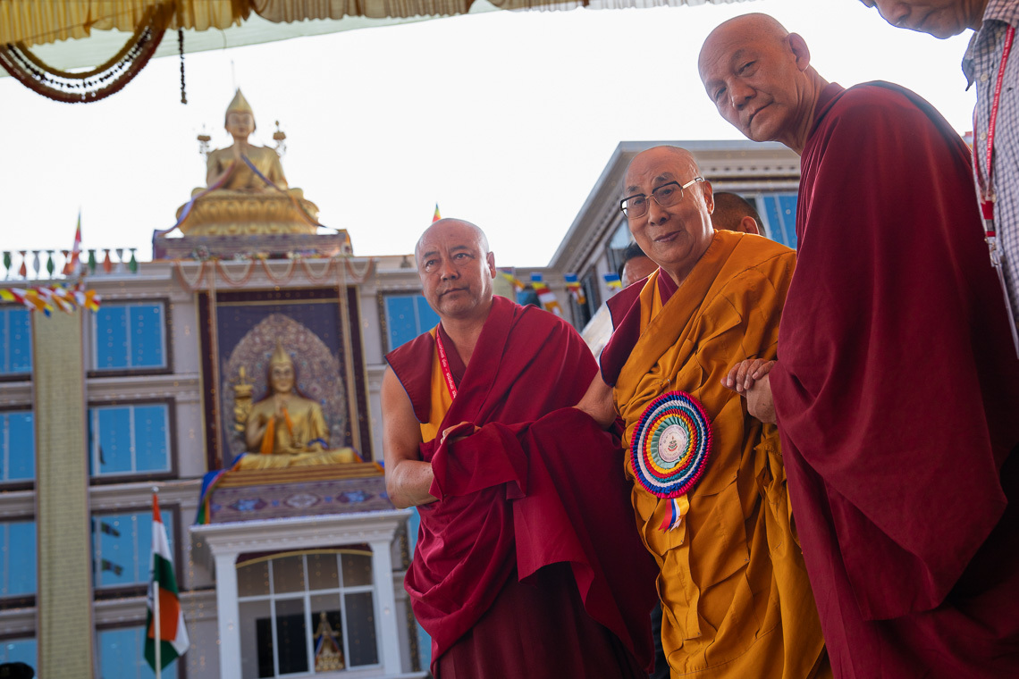 མཛད་སྒོ་འདིར་དགའ་ལྡན་ཁྲི་རིན་པོ་ཆེ་༸རྗེ་བཙུན་བློ་བཟང་རྡོ་རྗེ་དཔལ་བཟང་པོ་མཆོག་དང་། ཤར་པ་ཆོས་རྗེ་ངག་དབང་འབྱོར་ལྡན་རིན་པོ་ཆེ། ཤར་བྱང་གྲྭ་ཚང་གཉིས་ཀྱི་མཁན་རིན་པོ་ཆེ་རྣམ་གཉིས། མཁར་ཟུར་རྣམ་པ། སྒོ་མང་མཁན་རིན་པོ་ཆེ། བློ་གླིང་མཁན་རིན་པོ་ཆེ། སེར་སྨད་མཁན་རིན་པོ་ཆེ། སེར་བྱེས་མཁན་རིན་པོ་ཆེ། བཀྲ་ཤིས་ལྷུན་པོའི་མཁན་རིན་པོ་ཆེ། རྒྱུད་སྨད་མཁན་ཟུར་རིན་པོ་ཆེ། རྭ་སྟོད་མཁན་རིན་པོ་ཆེ། ས་སྐྱ་མཁན་རིན་པོ་ཆེ། རྙིང་མ་མཁན་རིན་པོ་ཆེ། བཙུན་དགོན་བྱང་ཆུབ་ཆོས་གླིང་གི་མཁན་རིན་པོ་ཆེན། གསེར་ཀོང་རྡོ་རྗེ་འཆང་། ཚོགས་ཆེན་སྤྲུལ་སྐུ་ལྷ་རྒྱལ་རིན་པོ་ཆེ། ཏ་པོ་མཁན་རིན་པོ་ཆེ་སྐུ་ཞོགས་སྐལ་ལྡན་རིན་པོ་ཆེ། ཤྲཱི་ལིང་ཀའི་རྒྱལ་ཁབ་ཀྱི་བླ་ཆེན་(The Chief Monk from Sri Lanka,)དང་། བྱང་ཆུབ་ལྗོན་ཤིང་གི་དགོན་པའི་དབུ་འཛིན་གཞན་ཡང་དགེ་སློང་ཁག་གཅིག་སོགས་ཀྱིས་གཙོས་དགེ་འདུན་པ་དང་མི་མང་སོགས་བརྒྱ་ཕྲག་ཁ་ཤས་འདུ་འཛོམས་གནང་།
