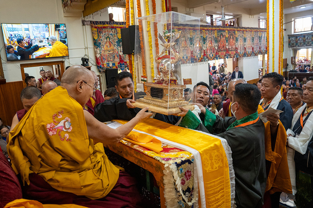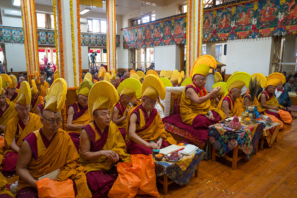 ཐེངས་འདིར་དང་སློབ་ཀྱི་བརྟན་བཞུགས་ལ་དགའ་ལྡན་ཁྲི་རིན་པོ་ཆེ་༸རྗེ་བཙུན་བློ་བཟང་རྡོ་རྗེ་དཔལ་བཟང་པོ་མཆོག་དང་། ཤར་པ་ཆོས་རྗེ་ངག་དབང་འབྱོར་ལྡན་མཆོག། སྒོ་མང་མཁན་པོ། ཤར་རྩེ་མཁན་པོ། བོད་མིའི་སྒྲིག་འཛུགས་ཀྱི་ཆེས་མཐོའི་ཁྲིམས་ཞིབ་ཁང་གི་ཁྲིམས་ཞིབ་པ་ཆེ་བ་དང་གཞན་གཉིས། བོད་མི་མང་སྤྱི་འཐུས་ལྷན་ཚོགས་ཀྱི་ཚོགས་གཙོ་གཞོན། བོད་མིའི་སྒྲིག་འཛུགས་ཀྱི་ཕྱི་དྲིལ་བཀའ་བློན་དང་བདེ་སྲུང་བཀའ་བློན་སོགས་ཀྱིས་གཙོས་གྲྭ་བཙུན་སྔགས་གསུམ་གྱིས་གཙོས་ཡུལ་ལུང་འདྲ་མིན་ནས་ཕེབས་པའི་དད་ལྡན་སེར་སྐྱ་སྟོང་ཕྲག་བརྒལ་བ་ཆེད་ཕེབས་གནང་ཡོད།